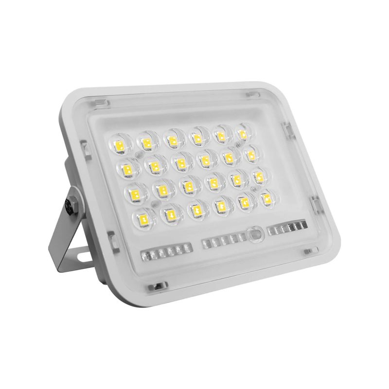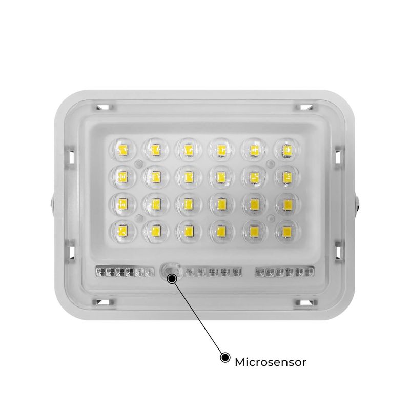 Proyector con panel solar y microsensor de movimiento, que incluye control remoto. Ideal para ser instalado en exteriores como terrazas, quinchos, talleres, pasillos, etc. Disponible en color blanco con luz cálida. Mide 5 largo x 17 ancho x 13,4 alto cm. El panel cuenta con 4 metros de cable.