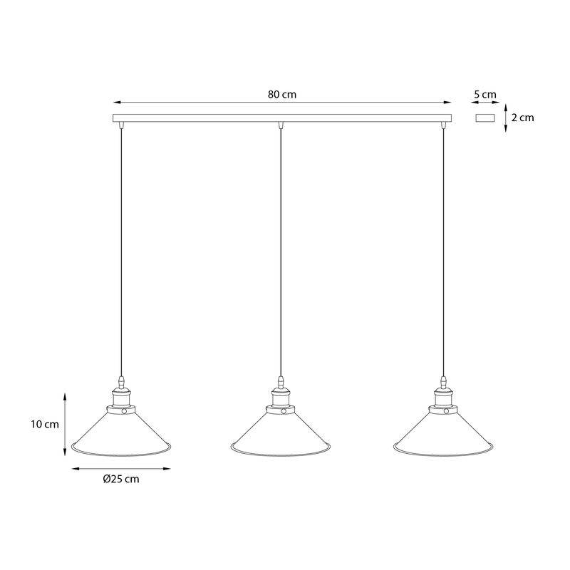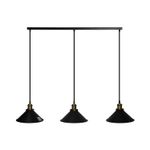 Dale un toque moderno y elegante a tus espacios con este set de 3 lámparas colgantes negras. Su diseño minimalista combina con distintos ambientes y proporciona una iluminación uniforme y acogedora, ideal para comedores, cocinas o locales comerciales.