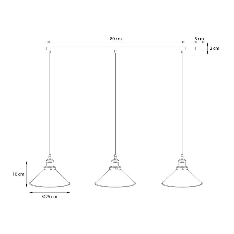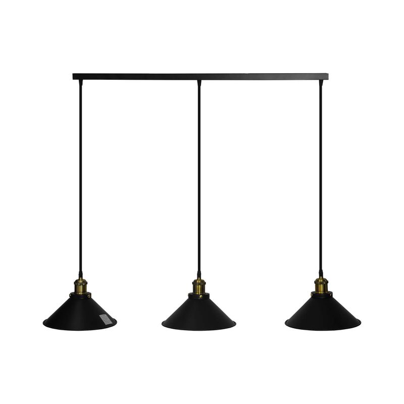 Dale un toque moderno y elegante a tus espacios con este set de 3 lámparas colgantes negras. Su diseño minimalista combina con distintos ambientes y proporciona una iluminación uniforme y acogedora, ideal para comedores, cocinas o locales comerciales. Incluye cordón (C33500019).
